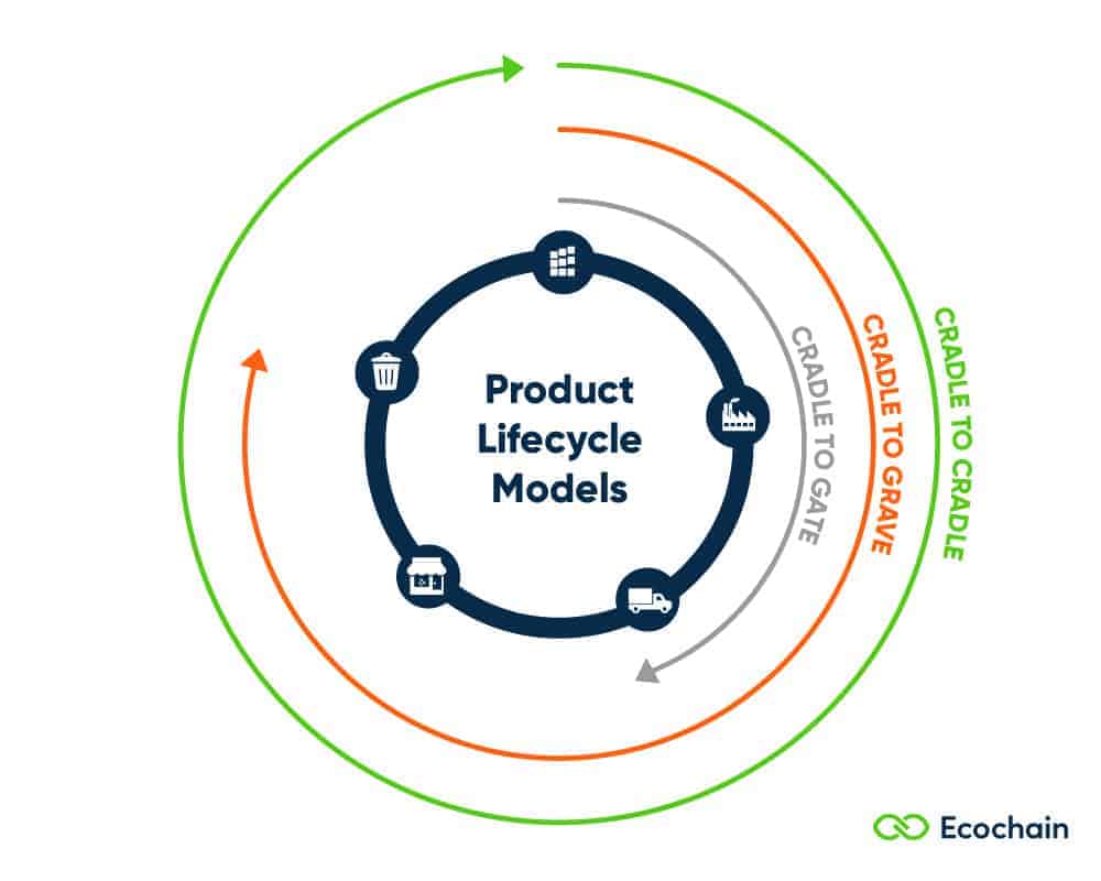Fashion brands and textile manufacturers can choose which different life cycle phases they want to include in their LCA. For example, the lifecycle model Cradle-to-gate focuses only on the footprint of your production until your product leaves the factory. Therefore including everything in your ‘upstream’ value chain e.g. the raw material extraction, transport of raw materials, and production processes.