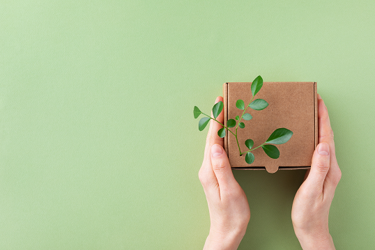 By designing products for efficient (bulk) shipping, and choosing low-impact packaging, greenhouse gas emissions from transport can be reduced.