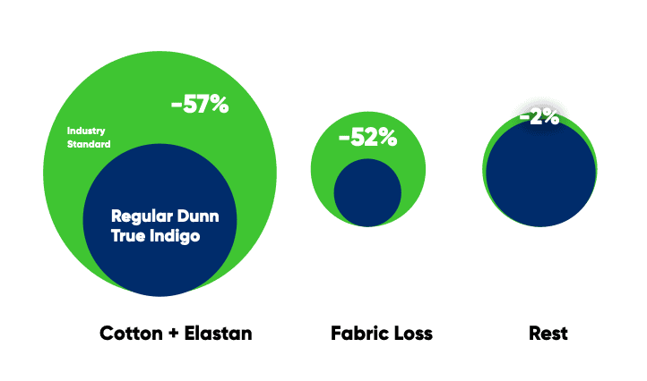 MUD Jeans compared different models based on their biodiverse performance. They found that their Regular Dunn True Indigo model performed a staggering 57% better than the industry standard.