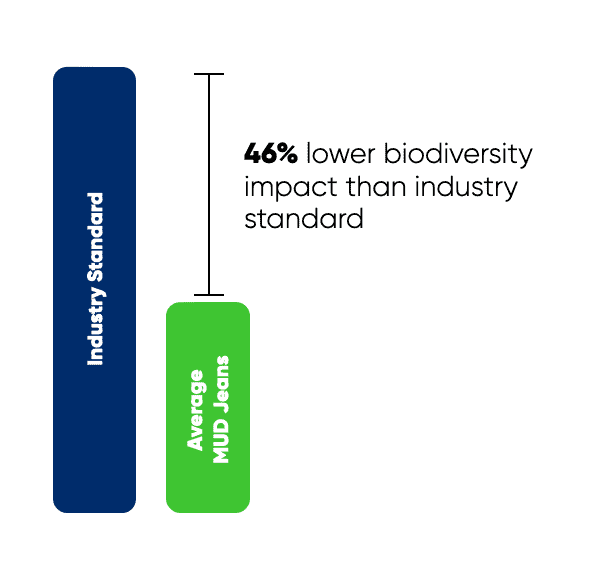 On average, MUD Jeans have a 46% lower biodiversity impact than the industry standard!